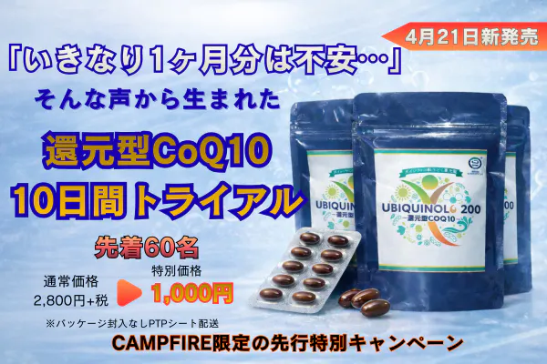 「いきなり1ヶ月は不安」 そんな声から生まれた10日間トライアル還元型CoQ10