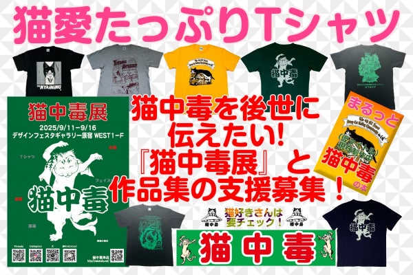 【猫愛たっぷりTシャツ】猫中毒を後世に伝えたい『猫中毒展』と作品集の支援募集!