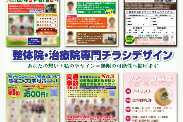 東京エリア多摩でグラフィックデザインを取り組んでいるSORAIRO DESIGNです。 主に整骨院や整体院向けのチラシデザインを専門に展開しています。 前回のお客様からは、「スムーズに対応ができました、安心してお願いできました。」 という嬉しいお言葉をいただいております