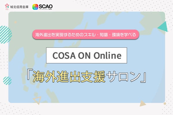 “海外進出”を実現するために、誰もが手軽に学べる海外進出実践型サロン。経営層から担当者まで、海外展開を実現したいと思うすべての人が、マインドセットから貿易知識やマーケティングまで幅広い領域について学べる実践型のプログラㇺを多数ご用意しています!(COSA ON Online会員さま向けのサロンです)