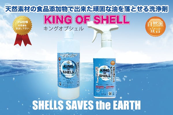 "天然由来の貝殻を使用した油脂分解洗浄剤「キングオブシェル」