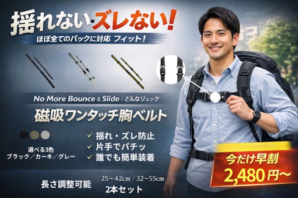 揺れない・ズレない。後付けできる磁吸バックル胸ベルト・2本セット