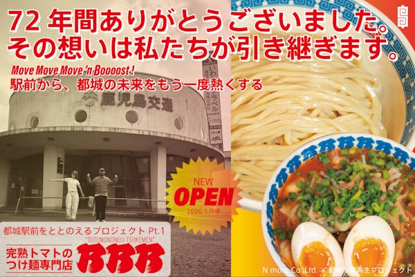 【都城駅前をととのえるプロジェクト Pt.1】完熟トマトのつけ麺専門店誕生!!