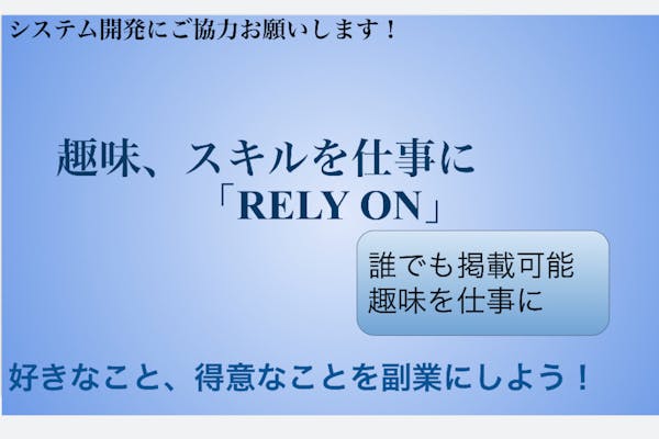 スキルの売買サービス「RELY ON」の開発にご協力お願いします