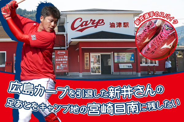 広島カープの雄・新井貴浩選手の「足あと」をキャンプ地の日南油津に残したい