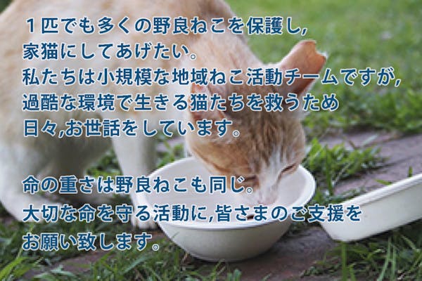 募集終了SUCCESS募集終了野良猫の命を守るための支援プロジェクト