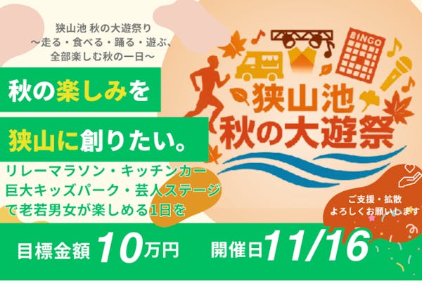 募集終了FINISH募集終了狭山市で毎年楽しみにされる秋の1日を創りたい!スポーツ・食欲・交流のイベント