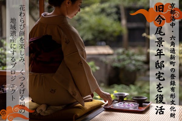 募集終了SUCCESS募集終了京都洛中・六角通新町の旧今尾景年邸宅を復活!花わらび餅を楽しみ寛げる地域遺産に