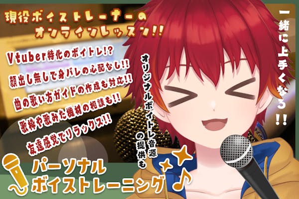 バーチャルボイストレーナー【森海タキビ】による顔出し無しのマンツーマンオンラインレッスン!! オリジナル音源を利用したレッスン、プロ歌手の歌唱分析や本人だけのボイトレノートを共有!! 一緒に悩んで一緒に成長していこうね!!メンバー 0 人