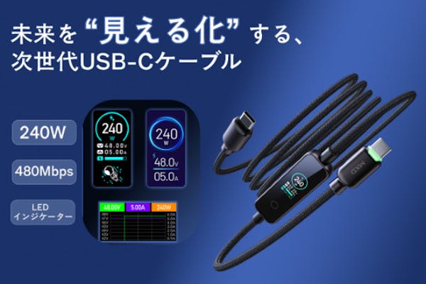 SUCCESS募集終了ただのケーブルじゃない。液晶表示 × 超高出力240W × 高耐久を1本に凝縮