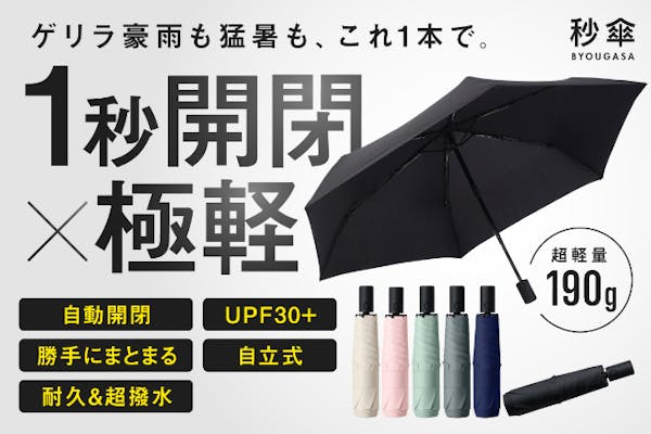 傘のストレス、1秒で解決! ワンプッシュ開閉×軽量190g×晴雨兼用デザイン傘。