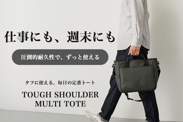 綺麗が持続する。色褪せず、傷にも強い。高耐久でタフに使えるショルダー型トート