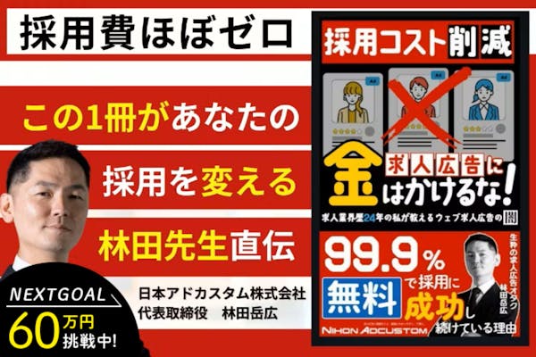 募集終了SUCCESS募集終了【無料で採用?】求人のプロが明かす!お金をかけない求人テク満載の書籍を広めたい!