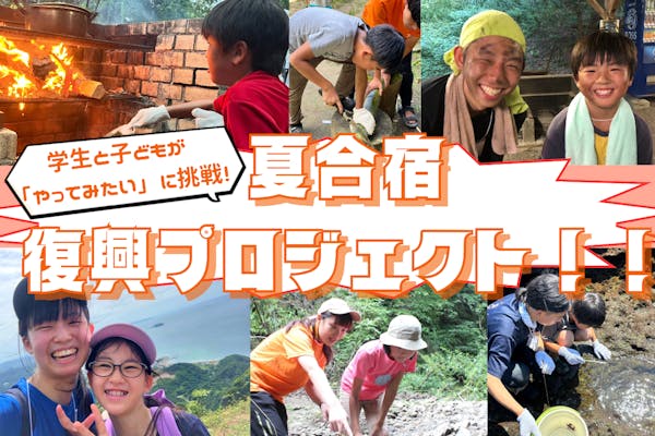 募集終了SUCCESS募集終了子どもと学生が『やってみたい』に共に挑戦! 夏合宿キャンプ復興プロジェクト!