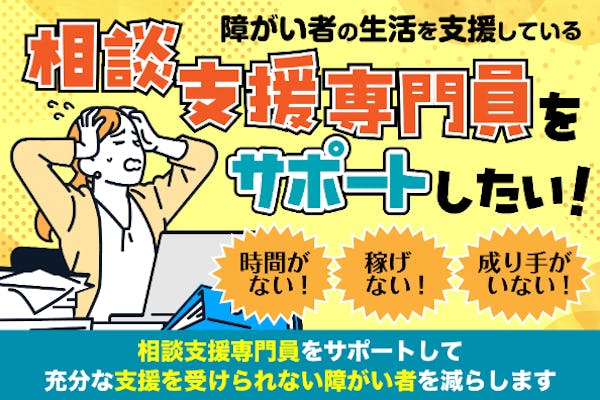 募集終了SUCCESS募集終了「相談支援専門員」をサポートして充分な支援を受けられない障がい者を減らしたい!