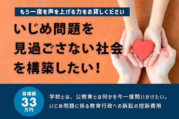 募集終了SUCCESS募集終了いじめ問題を見過ごさない社会を構築したい!声を上げる力をお貸しください