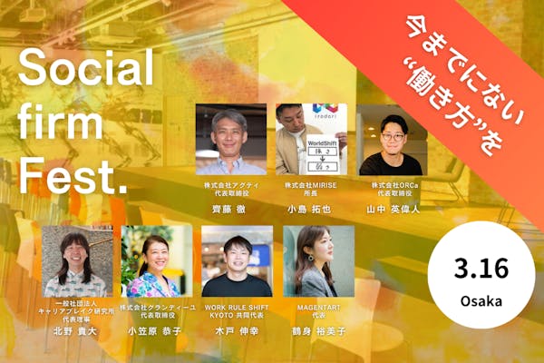 募集終了SUCCESS募集終了今までにない働き方に出会えるイベント「Social firm Fest.」開催!