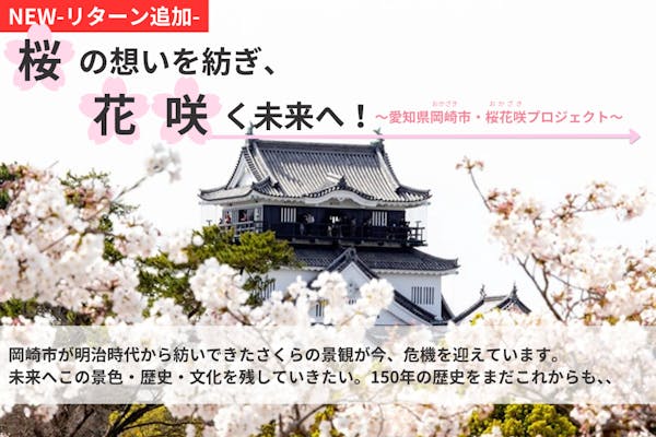 募集終了SUCCESS募集終了桜が語り継ぐ街の物語〜桜を愛するあなたの力で岡崎の桜を未来へと紡ぐ!〜