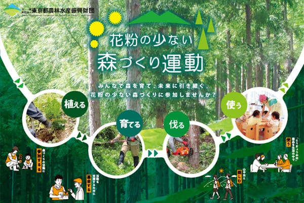 花粉を多く飛散するスギ・ヒノキを伐採し、花粉の少ないスギなどに植え替えます。
