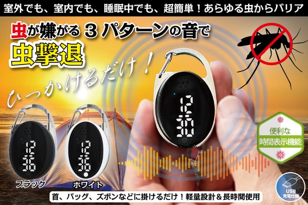 どこでも引っ掛け/いやな虫を超音波で撃退!充電式蚊よけウォッチ。化学薬品ゼロ!