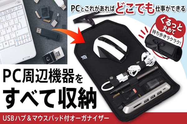 募集終了SUCCESS募集終了PC周辺機器を一つにスッキリ収納!USBハブ&マウスパッド付オーガナイザー!