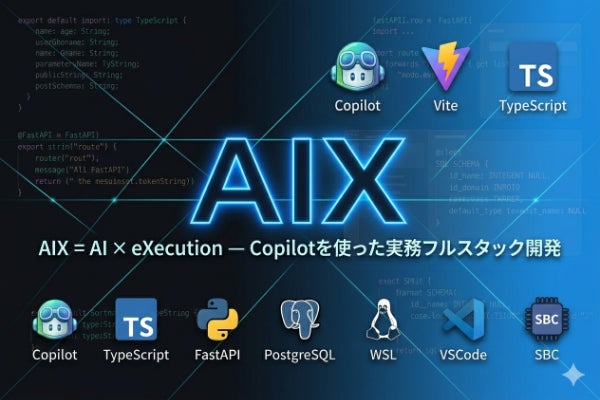 AI(Copilot)を使った実務開発手法「AIX」を学ぶフルスタック講座です。Vite × TypeScript × Python × PostgreSQL を使い、実務レベルのシステムを構築します。初心者〜中級者が現場で通用する開発力を身につけるコミュニティです。