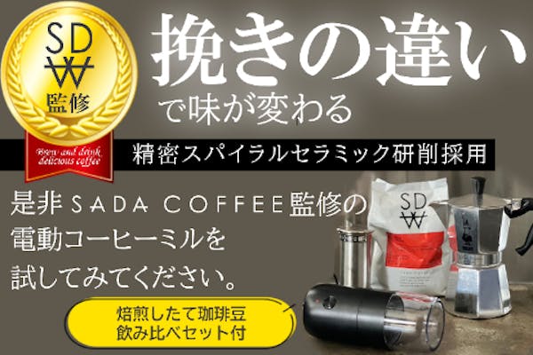 SUCCESS募集終了豆の挽き方で珈琲の味と香り激変。SADAコーヒー監修の電動ミルで至福の時間を。