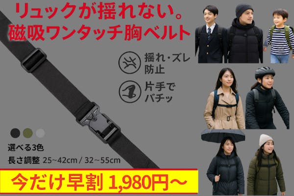 揺れない・ズレない。後付けできる磁吸バックル胸ベルト