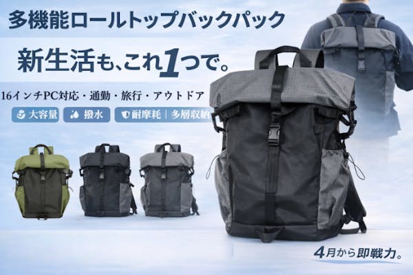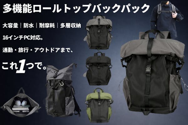 【大容量×防水】雨の日も安心。拡張60cmのロールトップ多機能バックパック