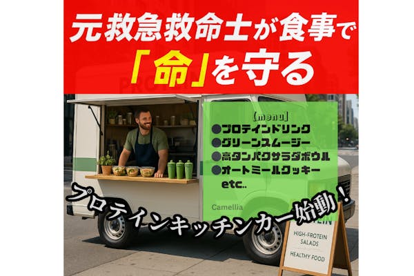 FINISH募集終了元救命士のプロテインキッチンカープロジェクト。高タンパクフード!食事で命を守る。