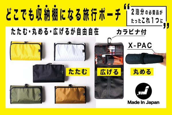 募集終了FINISH募集終了旅先でも過ごしやすく、X-pac素材でアウトドアにも!「収納棚になる旅行ポーチ」