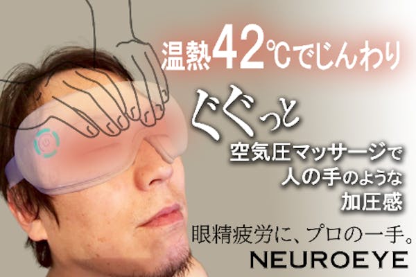 募集終了SUCCESS募集終了温熱と空気圧による人の手のような加圧で眼精疲労にプロの一手|NEUROEYE