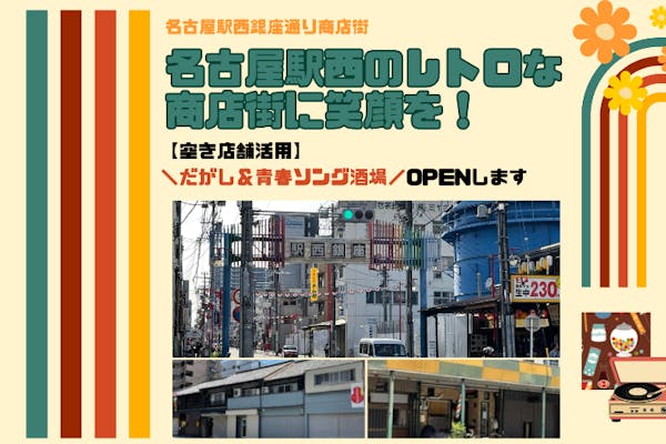 SUCCESS募集終了名古屋駅西のレトロな商店街に笑顔を!だがし&青春ソング酒場オープンします。