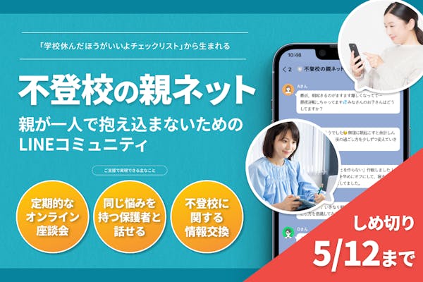 募集終了SUCCESS募集終了不登校の親ネット:親が一人で抱え込まないためのLINEコミュニティをつくります〜