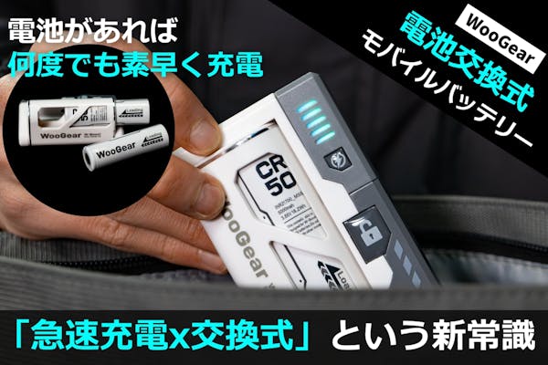 充電切れの心配無し!「替えが効く」心強い電池交換式モバイルバッテリー WB-50