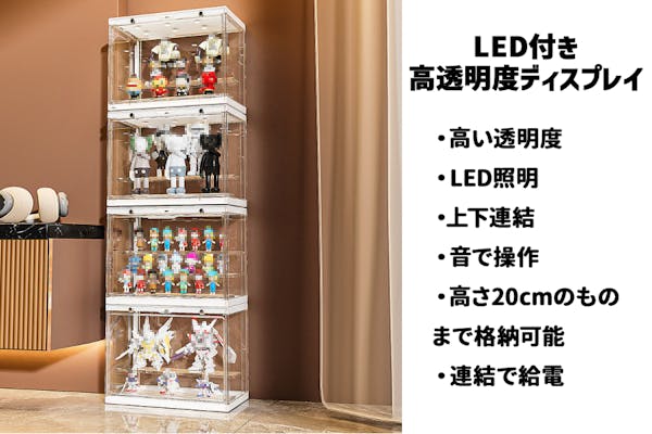 【コレクションで特別な空間を作ろう】LEDライト付き高透明度ディスプレイケース