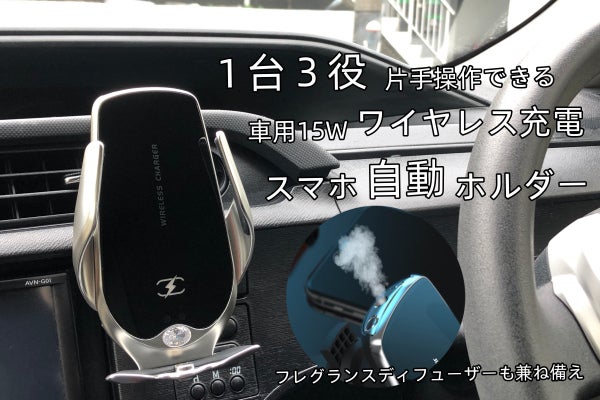 フレグランスディフューザー付き1台3役車載15Wスマホワイヤレス自動充電ホルター