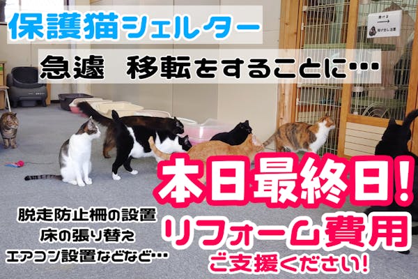募集終了SUCCESS募集終了保護猫施設!現在の場所が使えなくなるため急遽移転!リフォーム費用助けて!