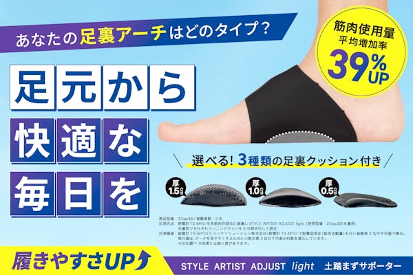 あなたにピッタリなサポーターに!3つの選べる土踏まずクッションで最適なアーチへ!