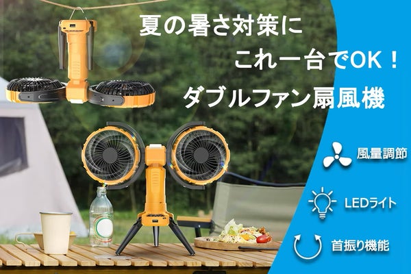 パワフルなダブルモーターを採用したコードレス扇風機!多機能アウトドアファン!