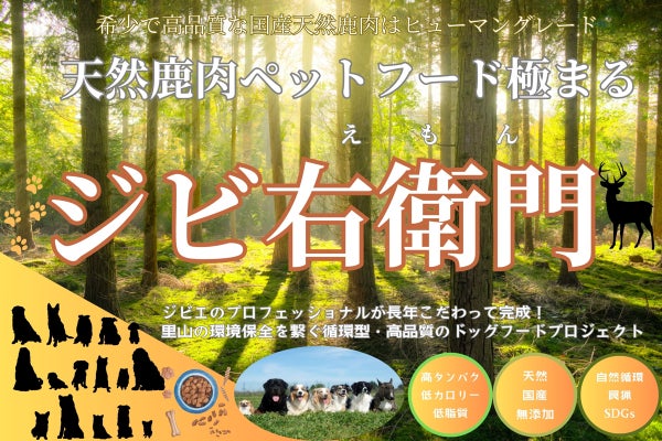 天然国産鹿肉を使用した自然派ドッグフードプロジェクト『ジビ右衛門』