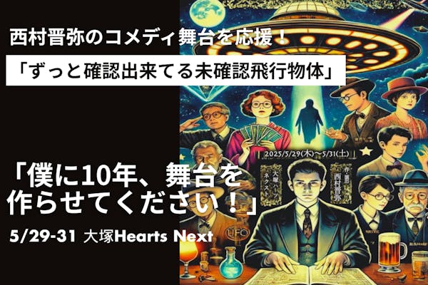 西村晋弥の舞台『ずっと確認出来てる未確認飛行物体』を応援!あなたの支援が力に!