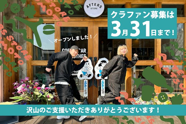 募集終了SUCCESS募集終了文化と芸術の街 松本市に長野産ブランドAFTERS︎︎の新店舗を作りたい!
