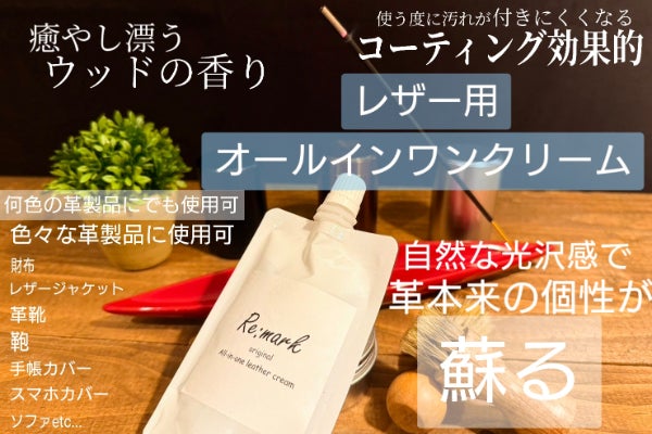 皮革用オールインワンクリーム。汚れ落とし・保水・保湿・保護・艶出しが1本で完結!