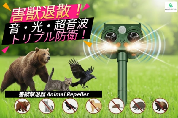 害獣退散! 音・光・超音波のトリプル防衛! 環境・動物にやさしい 害獣撃退器