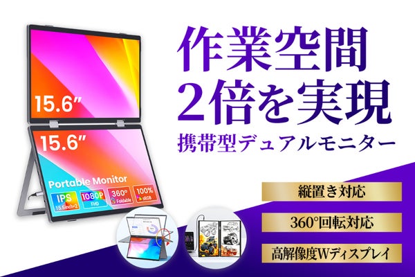 【360°回転&縦置き対応!】持ち運びできる15.6インチのWモバイルモニター