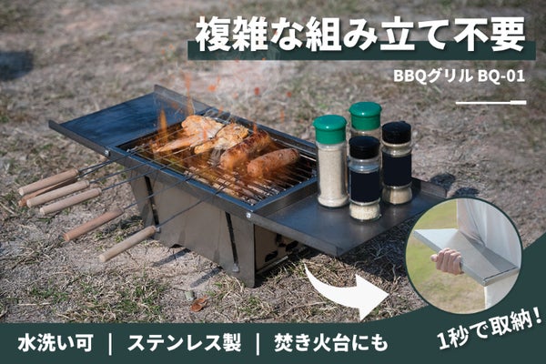 A4サイズに畳めて1秒で展開! 超ポータブルなBBQグリル「BQ-01」