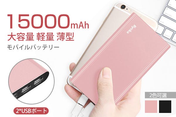 15000mAh大容量/超軽量モバイルバッテリー 2ポート 2.1A急速充電