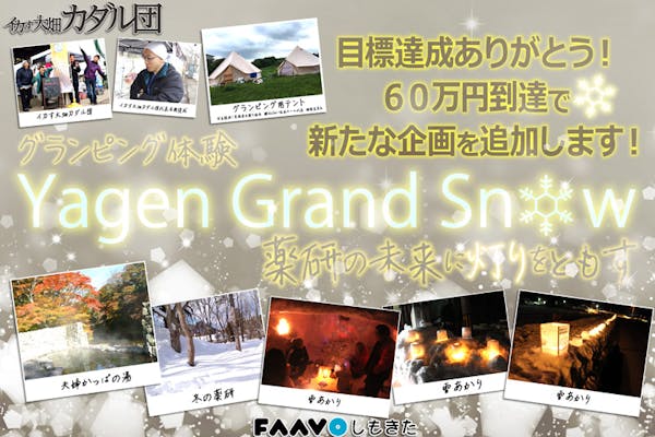 募集終了SUCCESS募集終了グランピング体験「YagenGrandSnow」薬研の未来に灯りをともす