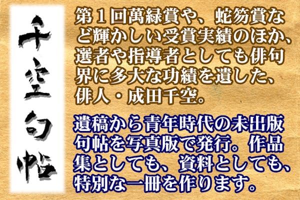 募集終了FINISH募集終了蛇笏賞俳人「成田千空」句帖 写真版発刊